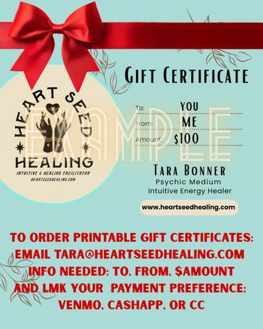 Please contact me with any inquiries you may have. Tara@heartseedhealing.com